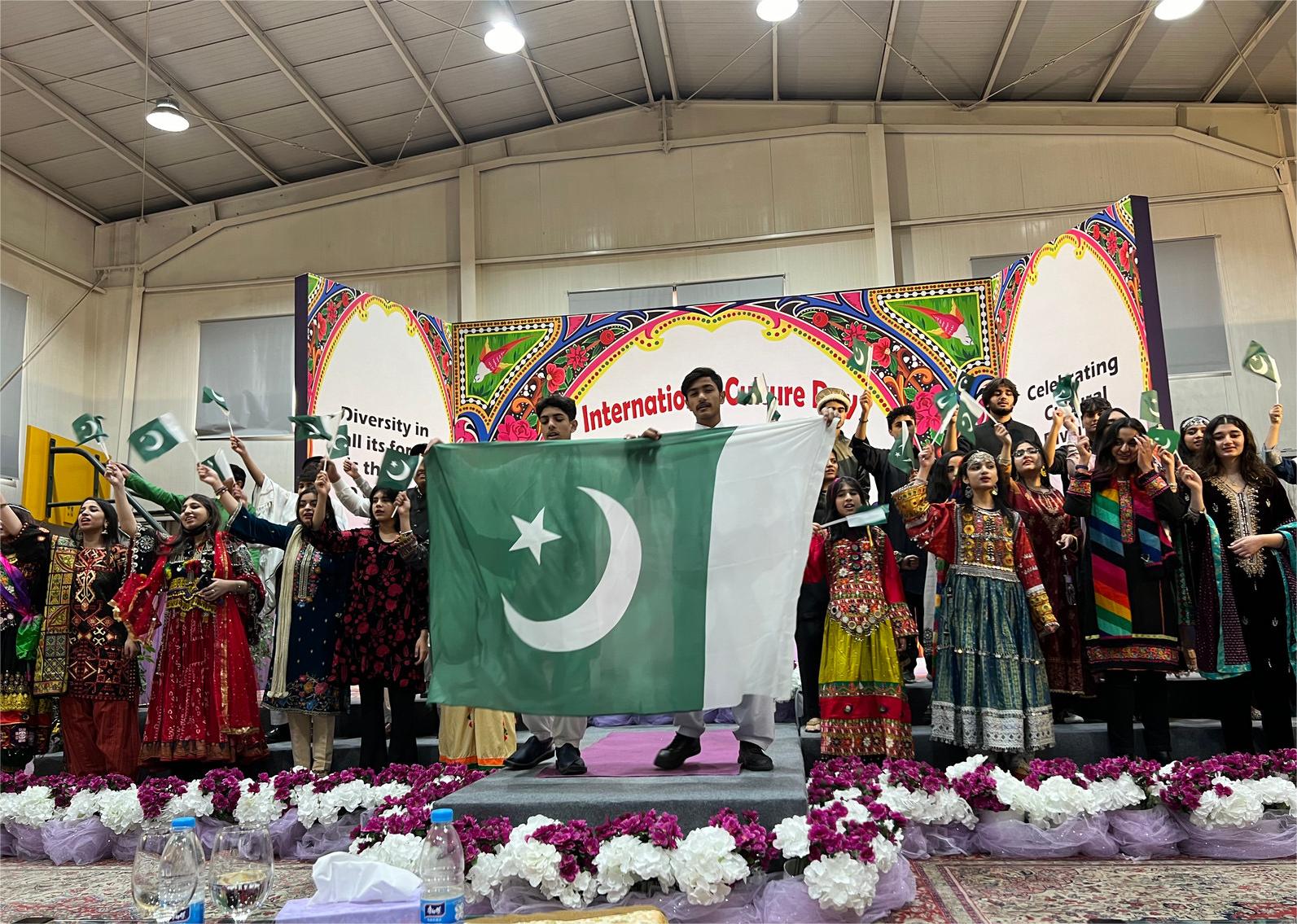全世界团结起来!巴基斯坦驻华使馆和巴基斯坦北京使馆学校国际文化日活动2023年11月26圆满举行。巴基斯坦使馆学校的师生激情演绎“祖国和我”。
